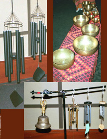 Tibetan singing bowls, gongs, metal chimes and tingsha