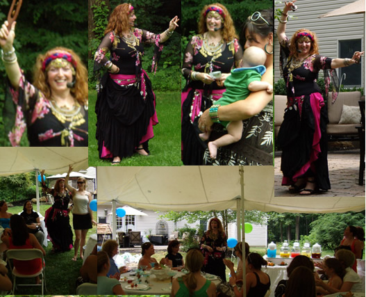 A full one-hour program is provided for your shower guests including a relaxing meditation and special blessing for mother and baby plus a mini-lesson which includes a brief overview of the history of middle eastern belly dancing and leading guests in a mini-lesson introducing hip articulation & graceful hand and arm movements! Tahya facilitates a fun day with the "girls"!